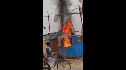 VIDEO : गोला में अचानक धूं धूं कर जल उठा ट्रांसफॉर्मर, बड़ा हादसा होने से बचा