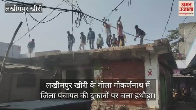 VIDEO : लखीमपुर खीरी के गोला गोकर्णनाथ में जिला पंचायत की दुकानों पर चला हथौड़ा