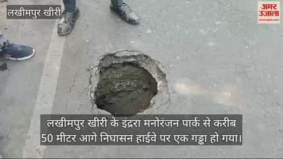 लखीमपुर खीरी के इंद्ररा मनोरंजन पार्क से करीब 50 मीटर आगे निघासन हाईवे पर एक गड्ढा हो गया। यह गड्ढा अंदर ही अंदर काफ़ी खोखला है। यह गड्ढा काफी खतरनाक है, जिससे कभी भी हादसा हो सकता है।