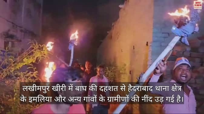 VIDEO : लखीमपुर खीरी में बाघ का खौफ... मशाल और लाठी-डंडे लेकर पहरेदारी कर रहे ग्रामीण