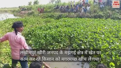 लखीमपुर खीरी जनपद के मझगई क्षेत्र में खेत पर काम कर रहे किसान को मगरमच्छ खींच ले गया। नया पुरवा निवासी चौधरी मंगलवार दोपहर करीब 12 बजे चौरी गांव के पास खेत में गन्ना गुड़ाई करने गए थे। लघुशंका आने पर वह खेत के पास नजदीक बह रहे नाले के पास गए। वहां पहले से मौजूद मगरमच्छ किसान को खींच ले गया। उनकी चीख सुनकर आसपास के लोग मौके पर पहुंचे और परिजनों को सूचना दी। सूचना पर पुलिस और वन विभाग की टीम मौके पर पहुंच गई। वन विभाग की टीम ग्रामीणों की मदद से नाले में चौधरी की तलाश कर रहे हैं, लेकिन शाम चार बजे तक उनका पता नहीं चल सका।