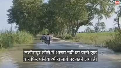 VIDEO : लखीमपुर खीरी में पलिया-भीरा मार्ग पर फिर पहुंचा शारदा का पानी, लोगों की बढ़ीं मुश्किलें
