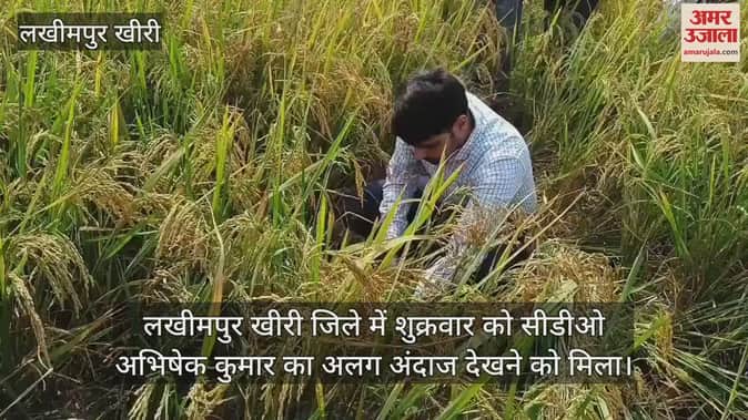 VIDEO : लखीमपुर खीरी में सीडीओ अभिषेक कुमार का अलग अंदाज, किसान के साथ काटी धान की फसल