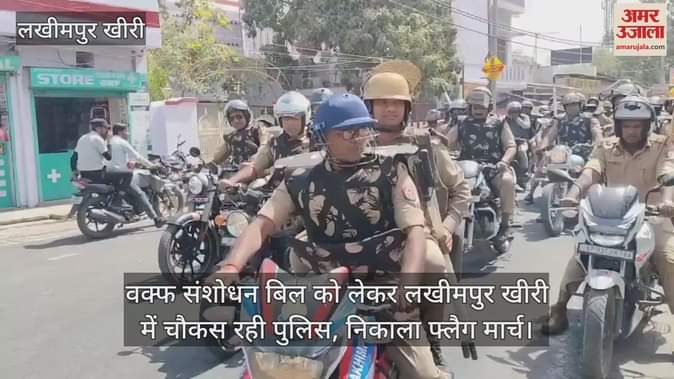 VIDEO : वक्फ संशोधन बिल को लेकर लखीमपुर खीरी में चौकस रही पुलिस, निकाला फ्लैग मार्च