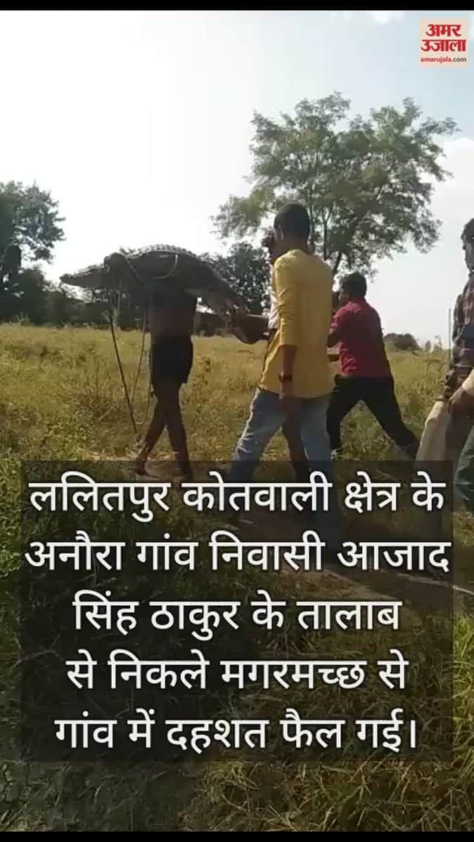 ललितपुर कोतवाली क्षेत्र के अनौरा गांव निवासी आजाद सिंह ठाकुर के तालाब से निकले मगरमच्छ से गांव में दहशत फैल गई। जानकारी पर वन विभाग की टीम ने रजवारा गांव निवासी सोहन रैकवार,संजू रैकवार और ग्रामीणों की मदद से मगरमच्छ की घेराबंदी कर रस्सी से उसका मुंह बांध दिया। मगरमच्छ को सजनाम नहर में छोड़ने के लिए सोहन और संजू ने उसे अपने कंधे पर लाद कर करीब 300 मीटर दूर खड़ी पिकअप वाहन में रख दिया। इसके वाहन सजनाम बांध पर पहुंचा जहां मगरमच्छ के मुंह पर बंधी रस्सी को खोलकर उसे बांध में सुरक्षित छोड़ दिया। गांव के लोगों ने संजू व सोहन की बहादुरी की सराहना की।