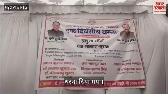उत्तर प्रदेश माध्यमिक शिक्षक संघ की ओर से डीआईओएस कार्यालय पर धरना दिया गया। संगठन के पदाधिकारियों ने कहा कि महात्मा गाँधी इण्टरकालेज सिसवा बाजार में कार्यरत शिक्षक पंकज कुमार एवं मोहम्मद हशीम का 15 दिन का देतन डॉक्यूमेंट वेरीफिकेशन के नाम पर बाधित रखा गया है। एरियर के रूप में इनका अविलम्ब भुगतान सुनिश्चित किया जाये। बापू शताब्दी इण्टर कालेज जाहवा में कार्यरत शिक्षक डॉक्टर विजय कुमार पटेल का एरियर अविलम्ब भुगतान किया जाये। शिक्षकों के वेतन से सामूहिक बीमा की कटौती मानय सम्पदा पोर्टल पर प्रदर्शित की जाए।