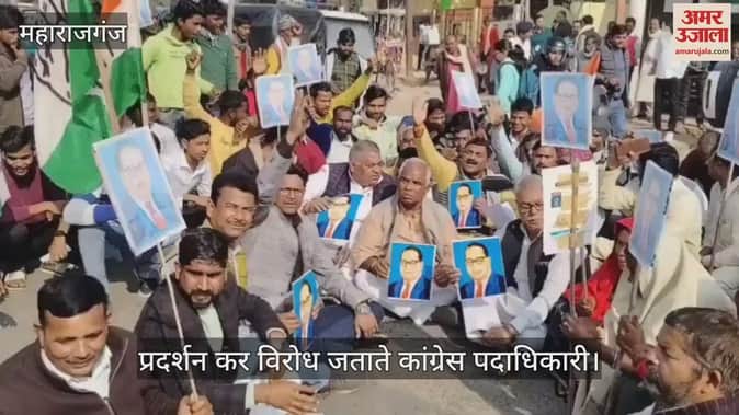 VIDEO : कांग्रेस पदाधिकरियों ने संसद में किए टिप्पणी को लेकर जताया विरोध