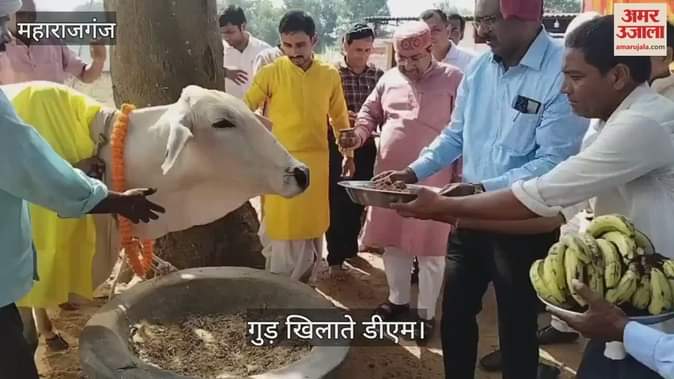 डीएम ने की गोवर्धन पूजा, गोवंश को खिलाया गुड़-केला