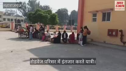 महराजगंज में रोडवेज परिसर में बस की कमी के कारण यात्री घंटों इंतजार कर रहे हैं। बुधवार को बस स्टेशन परिसर में बहुत सारे यात्री निचलौल और गड़ौरा जाने के लिए बस का इंतजार करते दिखे।