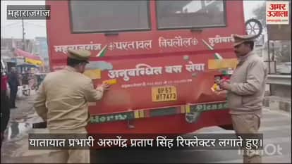 यातायात पुलिस के द्वारा सड़क सुरक्षा के तहत वाहनों पर रिफ्लेक्टर लगवाया गया है। यातायात प्रभारी अरुणेंद्र प्रताप सिंह ने बताया कि घने कोहरे की वजह से सड़कों पर हादसा होता है,जिसको लेकर बड़ी गाड़ियों पर रिफ्लेक्टर लगाया गया है।