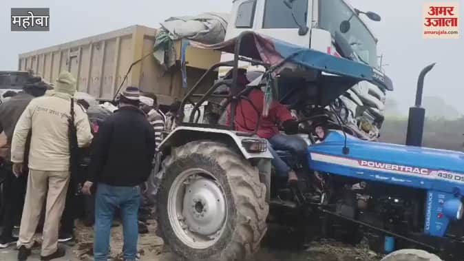 महोबा में सड़क हादसा, हाईवे पर डंपर के नीचे घुसा ट्रैक्टर, दंपती घायल
