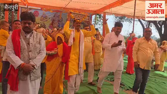VIDEO: बझेरा में निकली भव्य कलश यात्रा, डीजे की धुन पर गूंजे जयकारे; भागवत कथा का हुआ शुभारंभ