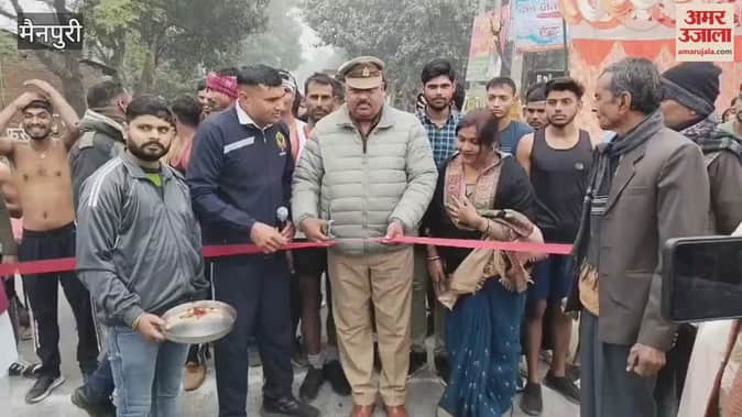 मैनपुरी के बेवर थाना क्षेत्र के ग्राम हजारा में दौड़ प्रतियोगिता का आयोजन किया गया। प्रतियोगिता का शुभारंभ मुख्य अतिथि के रूप में बेवर थाना प्रभारी अनिल कुमार सिंह ने फीता काटकर किया। कार्यक्रम के आयोजक विजेंद्र सिंह फौजी ने बताया कि ग्रामीण क्षेत्र के बच्चों और युवाओं को खेलों के माध्यम से आगे बढ़ाने के उद्देश्य से यह दौड़ प्रतियोगिता कराई गई है। प्रतियोगिता में लगभग आधा सैकड़ा युवाओं ने भाग लिया। प्रतिभागियों के बीच 1600 मीटर की दौड़ कराई गई, जिसमें युवाओं ने पूरे जोश के साथ प्रतिभाग किया। दौड़ प्रतियोगिता में केशव राजपूत निवासी नगला भोला ने प्रथम स्थान प्राप्त किया। वहीं द्वितीय स्थान रजनेश यादव पुत्र ब्रह्मप्रकाश निवासी नगला मुरार और तृतीय स्थान विशाल सक्सेना पुत्र अंतराम सक्सेना निवासी जिलही ने हासिल किया। विजेता युवाओं को प्रतीक चिह्न भेंट कर, शाॅल ओढ़ाकर और माला पहनाकर सम्मानित किया गया।