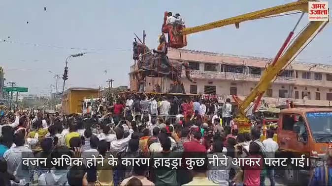VIDEO : महाराणा प्रताप की प्रतिमा पर माल्यार्पण के दौरान पलट गई हाइड्रा, देखें हादसे का लाइव वीडियो