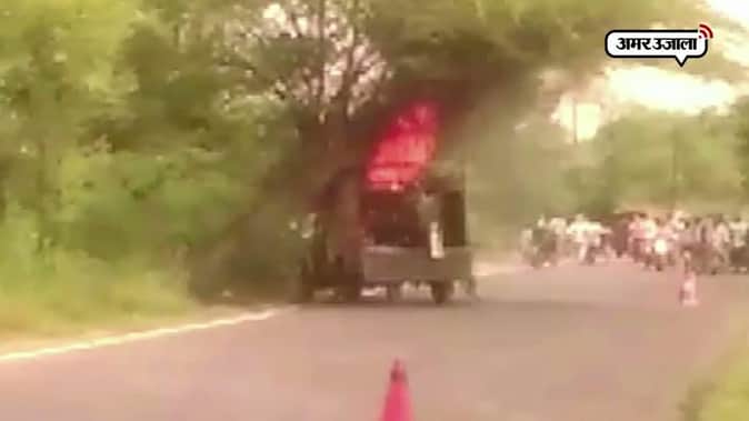 बचने की कोशिश में हुआ हादसा, गाड़ी में लगी आग