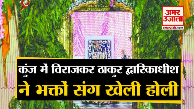 कुंज में विराजकर ठाकुर द्वारिकाधीश ने भक्तों संग खेली होली, देखें वीडियो
