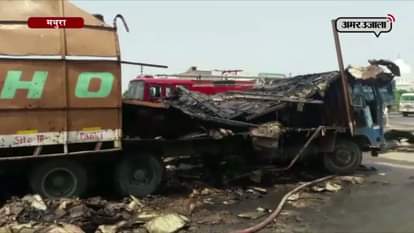 मथुरा में हाईवे पर ट्रक में लगी आग