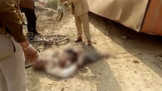 मथुरा में वीभत्स सड़क दुर्घटना, चादर में लपेट कर उठाना पड़ा शव