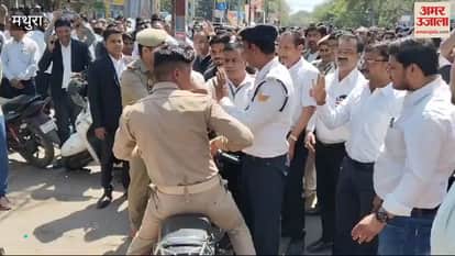 मथुरा में साथी अधिवक्ता के साथ हुई मारपीट के मामले में आक्रोषित अधिवक्ताओं ने मंगलवार को एसएसपी, डीएम कार्यालय पर प्रदर्शन किया। इसके बाद पुलिस लाइन के सामने जाम लगा दिया। जाम लगने के कारण चालकों को काफी परेशानी हुई। हंगामा की सूचना पर एसपी सिटी डॉक्टर अरविंद कुमार, सीओ सिटी भूषण वर्मा, सीओ रिफाइनरी श्वेता वर्मा फोर्स के साथ मौके पर पहुंच गए।