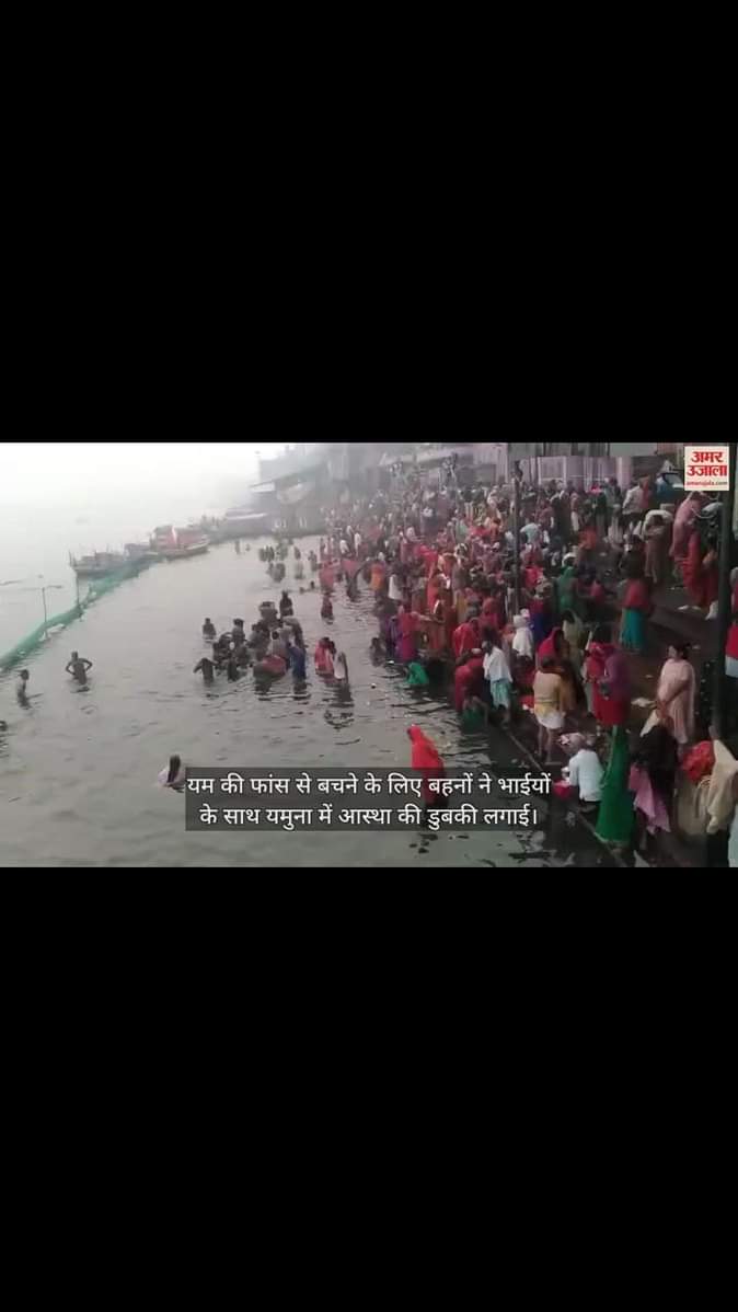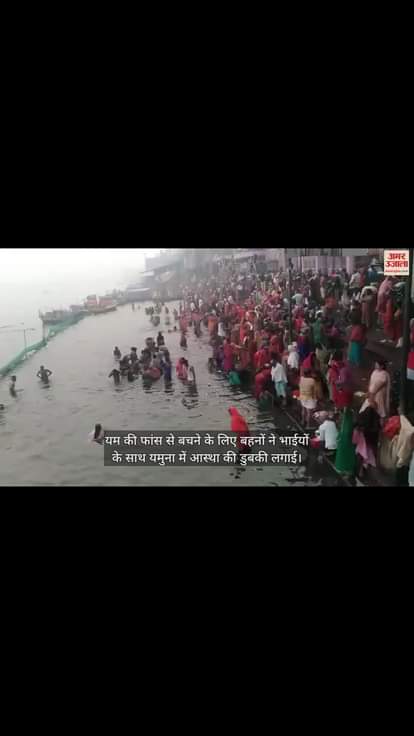 यम की फांस से बचने के लिए बहनों ने भाईयों के साथ यमुना में आस्था की डुबकी लगाई। सुबह से ही हजारों की संख्या में पहुंचे भाई-बहन यमुना के घाट पर नजर आए। इस दौरान यम-यमुना मंदिर में पूजा भी की।