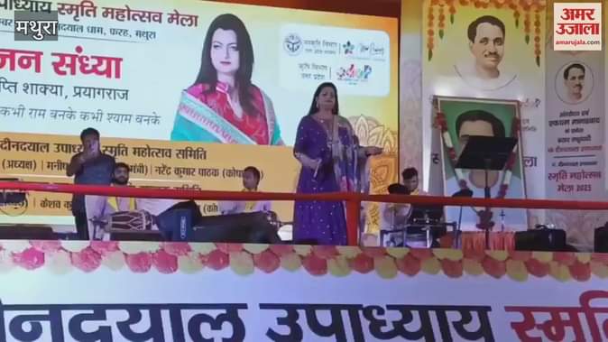 मथुरा के फरह में पं. दीनदयाल उपाध्याय स्मृति महोत्सव के चौथे दिन रात्रिकालीन भजन संध्या का आयोजन किया गया। इसमें प्रयागराज से आईं सुप्रसिद्ध भजन गायिका तृप्ति शाक्या ने अपनी प्रस्तुति दी। भजन संध्या का शुभारम्भ भजन गायिका ने 'सत्यम शिवम् सुंदरम' गाकर किया। उसके बाद भजन 'मेरे मोहन मुरलिया वाले किया जीवन ये तेरे हवाले' बांकेबिहारी को समर्पित भजन गाया तो पंडाल में उपस्थित श्रोता मंत्रमुग्ध होकर भजन गुनगुनाने लगे। जैसे ही भजन गायिका तृप्ति शाक्य ने अपना सुप्रसिद्ध भजन 'कभी राम बनकर आना, कभी श्याम बनकर आना' गाना शुरू किया तो सभी श्रोतागण झूमते हुए भजन गुनगुनाने लगे।