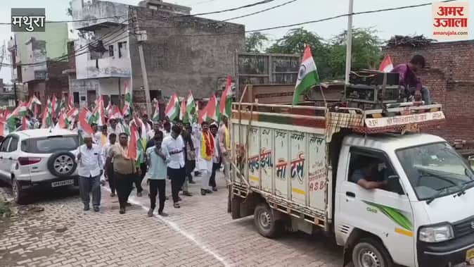 मथुरा के सौंख में हर घर तिरंगा अभियान के तहत भारतीय जनता पार्टी मगोर्रा मंडल के कार्यकर्ताओं एवं पदाधिकारियों ने पूर्व सैनिकों के साथ तिरंगा यात्रा निकाली। इसका लोगों ने पुष्प वर्षा कर स्वागत किया। यात्रा का शुभारंभ नगर पंचायत चेयरमैन योगेश लंबरदार व मंडल अध्यक्ष सतेंद्र चौधरी ने संयुक्त रूप से किया। यात्रा शेढ़ का मठ, गांधी चौक, बैंक चौराहा, मुख्य बाजार, राम मंदिर चौक, सब्जी मंडी, लुहार बाजार, पुन्ना थोक आदि मार्गों से गुजरी। पूर्व चेयरमैन भरत सिंह, हेमराज सिंह, प्रेम सिंह, प्रदीप कुंतल, प्रधान पालेंद्र सिंह आदि माैजूद रहे।