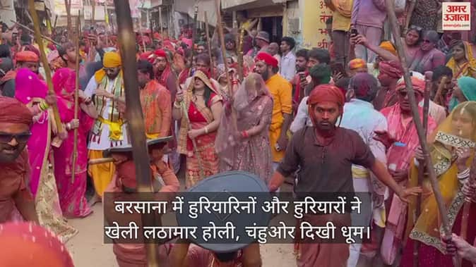 VIDEO : बरसाना में हुरियारिनों और हुरियारों ने खेली लठामार होली, चंहुओर दिखी धूम