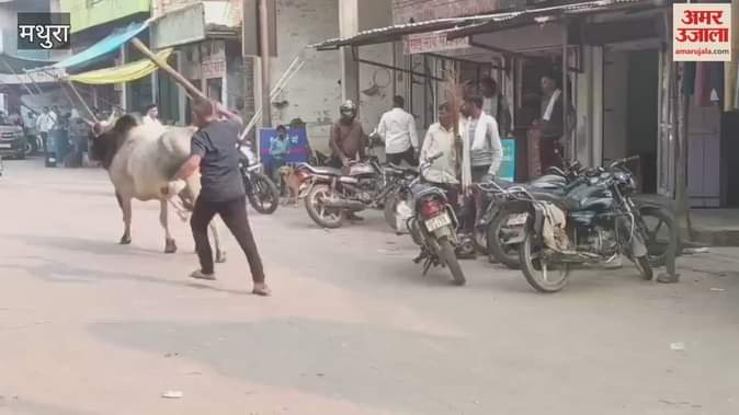 मथुरा के सौंख में रविवार दोपहर करीब तीन बजे पशु अस्पताल स्थित बाजार में दो आवारा सांड़ों में लड़ाई हो गई। इससे बाजार में अफरातफरी मच गई। सामान खरीद रहे लोग भाग खड़े हुए। लोगों का आवागमन रुक गया। लोगों ने पानी डालकर और डंडों से सांड़ों को भगाया। घटना का वीडियो सोशल मीडिया पर वयरल हो रहा है। लोगों का कहना था कि त्योहार नगर पंचायत की ओर से कोई व्यवस्था नहीं की गई है। चेयरमैन योगेश लंबरदार का कहना है कि सांड़ों को पकड़कर जल्द गोशाला पहुंचाया जाएगा।