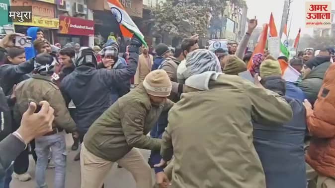 VIDEO: RSS प्रमुख से मिलने जा रहे कांग्रेस कार्यकर्ताओं की पुलिस से झड़प, होली गेट पर जमकर हुआ हंगामा