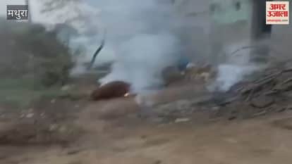 VIDEO: मथुरा के गांव भद्रवन में बिजली का तार टूटने से जिंदा जलकर मर गई गाय, ग्रामीणों में पनपा आक्रोश