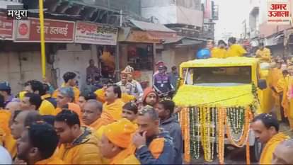जगद्गुरु धाम प्रेम भवन के हॉल में रखे गए जगद्गुरु कृपालु परिषद की चेयरपर्सन डॉक्टर विशाखा त्रिपाठी के पार्थिव शरीर के अंतिम दर्शन को बुधवार को गीता मनीषी स्वामी ज्ञानानंद महाराज, उच्च न्यायालय के न्यायाधीश आरबी शर्मा और पूर्व सांसद सीमा उपाध्याय पहुंचीं। यहां दर्शन के बाद सभी ने विशाखा को श्रद्धांजलि अर्पित की। इधर, बृहस्पतिवार प्रात: छह बजे अंतिम यात्रा केशीघाट के लिए निकाली गई। करीब 150 पुलिस के जवान अंतिम यात्रा की सुरक्षा में मुस्तैद रहे।