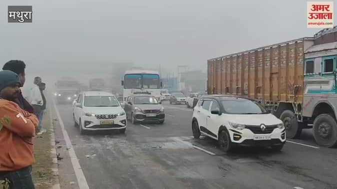 VIDEO: घने कोहरे का कहर...मथुरा में जैंत कट पर कई वाहन टकराए, रोडवेज बस में घुसी कार; कई यात्री घायल