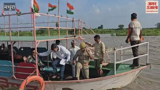 VIDEO: मथुरा में यमुना का राैद्र रूप...नाव से जिलाधिकारी ने किया निरीक्षण