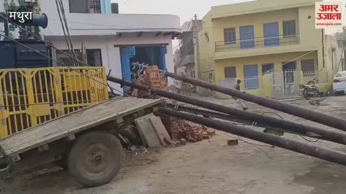 मथुरा के छाता कस्बे के हरनाथिया थोक स्थित मुख चौराहे पर एक दूसरे के सहारे खड़े चार विद्युत पोल मध्य रात्रि अचानक गिर पड़े। गनीमत रही कि रात्रि का समय था, यदि ये हादसा दिन में होता तो किसी की जान भी जा सकती थी।