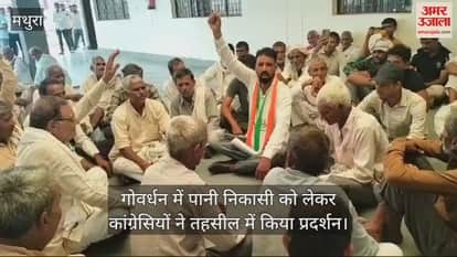 VIDEO : गोवर्धन में पानी निकासी को लेकर कांग्रेसियों ने तहसील में किया प्रदर्शन, की नारेबाजी