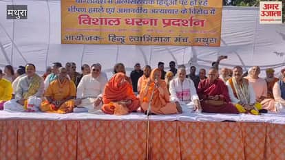मथुरा में बांग्लादेश में हिंदुओं पर हो रहे उत्पीड़न को लेकर हिंदू स्वाभिमान मंच ने विशाल धरना प्रदर्शन किया। इसमें जिले के तमात हिंदू संगठन और सामाजिक संगठन एकजुट हुए। बांग्लादेश के हिंदुओं के समर्थन में अपनी आवाज बुलंद की