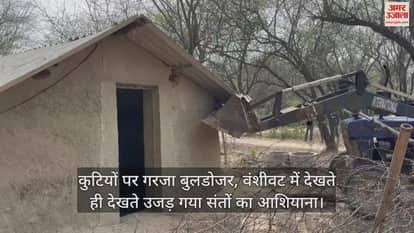 VIDEO : कुटियों पर गरजा बुलडोजर, वंशीवट में देखते ही देखते उजड़ गया संतों का आशियाना