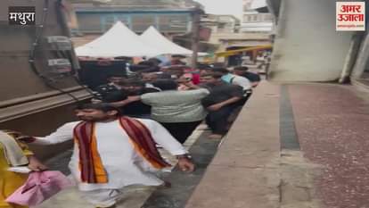 VIDEO: कथा वाचक धीरेंद्र शास्त्री ने राधा रमण मंदिर में की पूजा-अर्चना