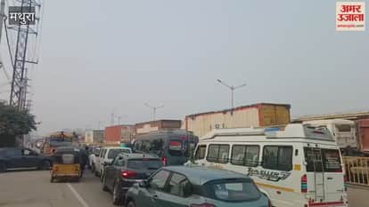 मथुरा में आगरा- दिल्ली नेशनल हाईवे पर रविवार को भीषण जाम लग गया। कई किमी तक वाहनों की कतार लग गई। करीब तीन घंटे तक वाहन हाईवे पर रेंगते हुए नजर आए। कुछ पुलिसकर्मी नहरौली और जय गुरुदेव चौराहे पर खड़े थे, लेकिन लोगों को जाम से राहत नहीं मिली।