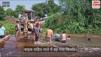 VIDEO : मथुरा में बाइक सहित नाले में बह गया किशोर, रो-रोकर घरवाले बेसुध