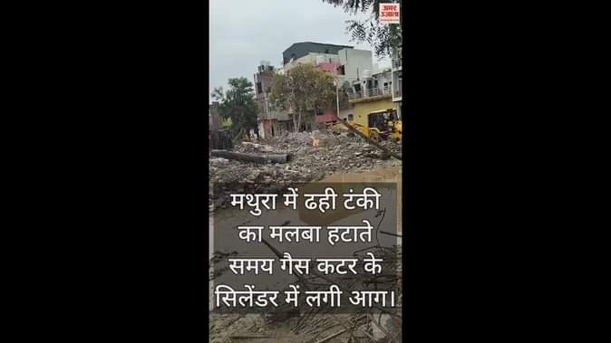 VIDEO : मथुरा में ढही टंकी का मलबा हटाते समय गैस कटर के सिलेंडर में लगी आग