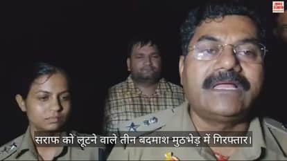 VIDEO : मथुरा में सराफ को लूटने वाले तीन बदमाशों की पुलिस से मुठभेड़, पैर में गोली लगने से तीनों घायल