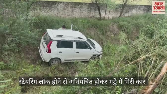 VIDEO : मथुरा में स्टेयरिंग लॉक होने से अनियंत्रित होकर गड्ढे में गिरी कार, प्रोफेसर घायल