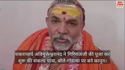 VIDEO : शंकराचार्य अविमुक्तेश्वरानंद ने गिरिराजजी की पूजा कर शुरू की संकल्प यात्रा, बोले-गोहत्या पर बने कानून