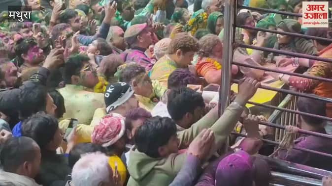 VIDEO: बांकेबिहारी मंदिर में वसंतोत्सव की धूम, गुलाल संग शुरू हुई ब्रज की होली