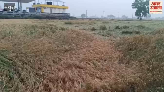 मथुरा में तेज आंधी और बारिश से सैकड़ों एकड़ में खड़ी गेहूं की फसल जमीन पर गिर गई, जिससे किसानों को भारी नुकसान हुआ। प्रभावित किसानों ने प्रशासन से सर्वे कर मुआवजा देने की मांग की है।