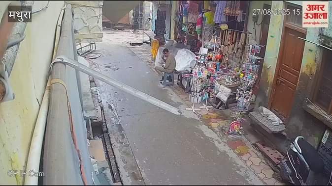 मथुरा के वृंदावन में दो सांड आपस में भिड़ते-भिड़ते अचानक दुकान में घुस गए। अचानक हुई इस घटना से मौके पर अफरा-तफरी मच गई। इस दौरान यहां बैठा पुलिसकर्मी बाल-बाल बच गया। सांडों की इस भिड़ंत का वीडियो सोशल मीडिया पर तेजी से वायरल हो रहा है।