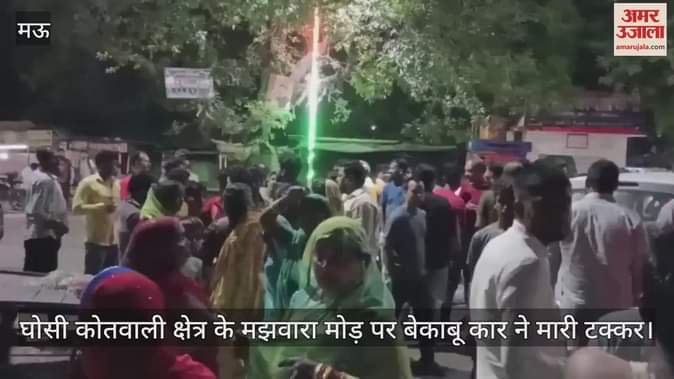 मऊ में बेकाबू कार ने ठेले को मारी टक्कर, दुकानदार हुआ घायल, मौके पर जमा हुई भीड़