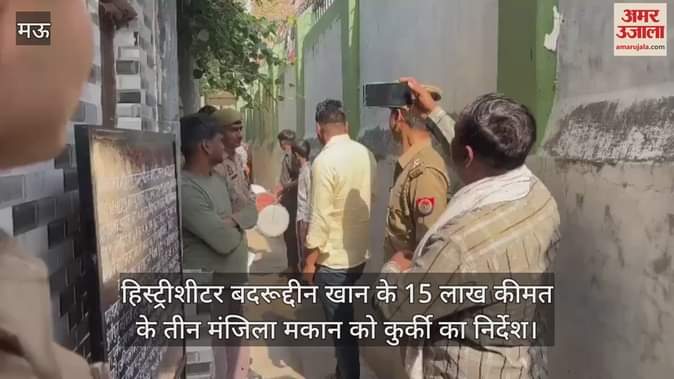 VIDEO : मऊ में अपराध पर चोट, हिस्ट्रीशीटर का मकान कुर्क, डीएम के निर्देश पर बजा ढ़ोल