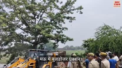 VIDEO : मऊ में चला बाबा का बुलडोजर, नदी किनारे बने 10 अवैध अतिक्रमण को किया गया ध्वस्त